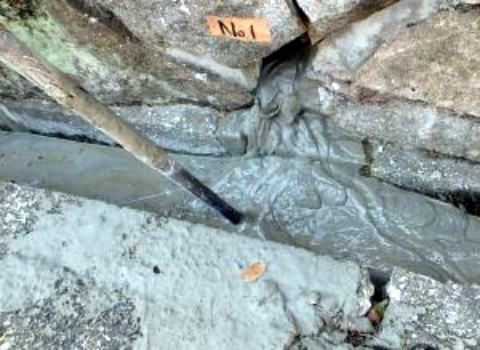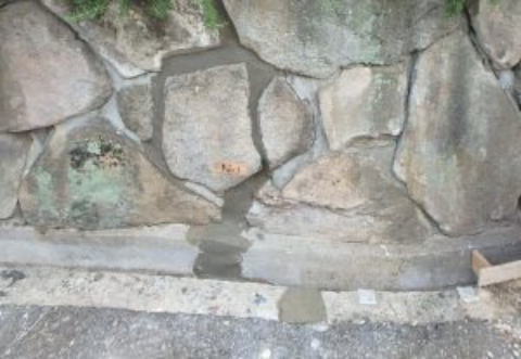 モルダム工法」は、既存の石積み擁壁を取り壊すことなく、石積み石垣の内部に、優れた接着性を有する専用充填剤を注入することで補修・補強ができる工法です。