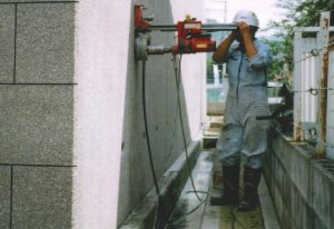 ダイアモンドコアボーリング機を使用し、Φ75mmの孔をあけます。
