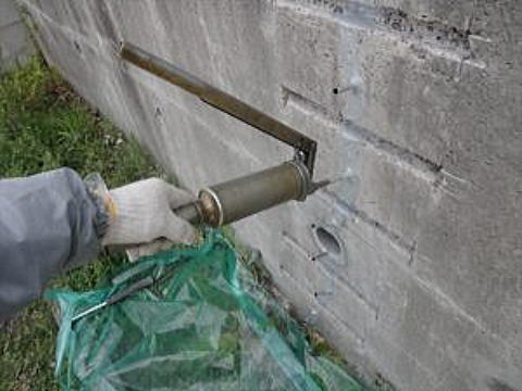 クラック内部にグリスガンで高粘度エポキシ樹脂を注入します。