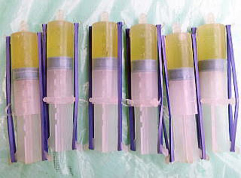 シリンダー(注入器)にエポキシ樹脂を充填した状況