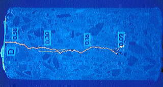 ひび割れ幅とエポキシ樹脂の注入状況試験片断面