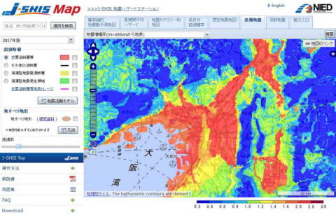 J-SHISMapで、地盤の揺れやすさが確認できます。