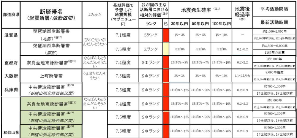 この内、関西圏では以下の「Sランク」の活断層帯があります。
