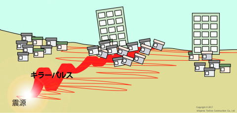 「キラーパルス」は、周期1秒程度の強いパルス性の大振幅地震動で、古い木造住宅なぎ倒す破壊力の高い地震動です。