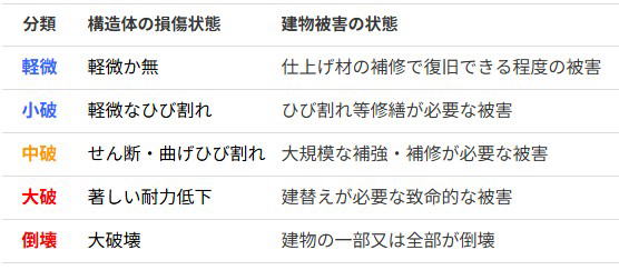 震度6弱~6強(300~400ガル程度) 倒壊・崩壊が起こらず、人命が守られる。