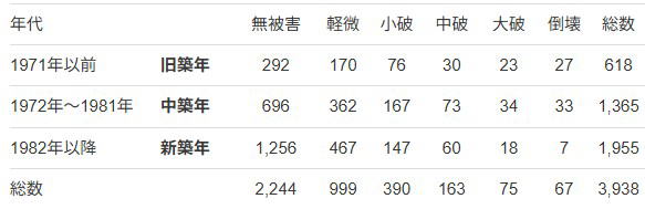 旧耐震基準であっても、バランスよく設計されたRC建物では、大地震の規定は無くとも、阪神淡路大震災の被災地で軽微な損傷に留まった建物が多くあり、更に最低限の基準を超えて新耐震基準に相当する耐震性を有した建物も少なからずありますので、旧耐震基準の時期に建てられた建物だから危険と単純に言い切れることでもありません。