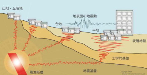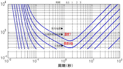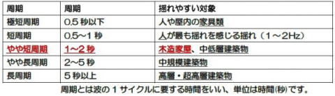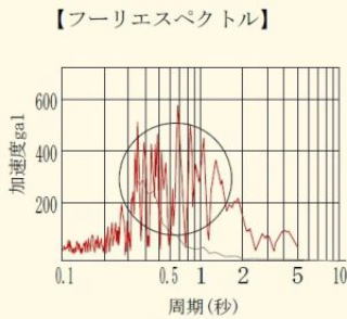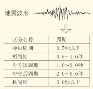 卓越周期:地震動の波形の中で、建物に大きな影響を与える周期のことで、地盤が軟弱なほど卓越周期は長くなります。