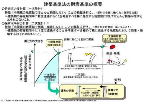 新耐震設計法では、建物の構造は以下の2段階に分け、中地震と大地震に対する安全性が検討されます。