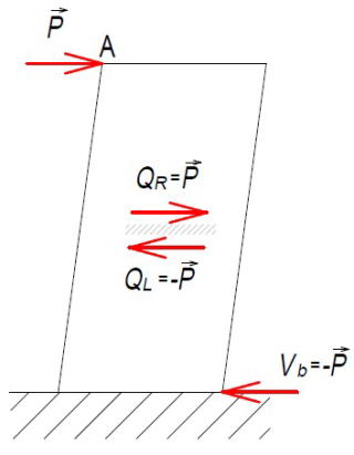 物体のA点に力Pが加わった時、固定端には同じ力の反対方向の反力Vbが生じます。