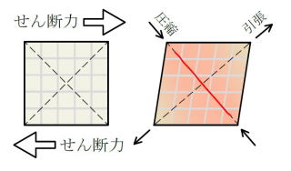 その力はハサミで切るような対の力で、剪断力と呼ばれます。
