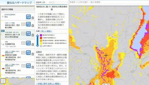 「地形区分に基づく液状化の発生傾向図」と「都道府県液状化危険度分布図」をハザードマップポータルサイト『