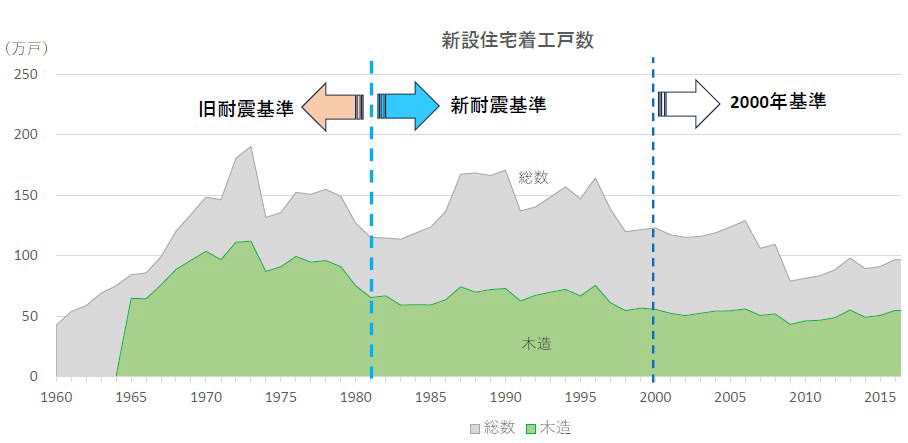 その差の要因は、大地震が発生し大きな被害が生じるたびに、建物の耐震性能の基準となる「