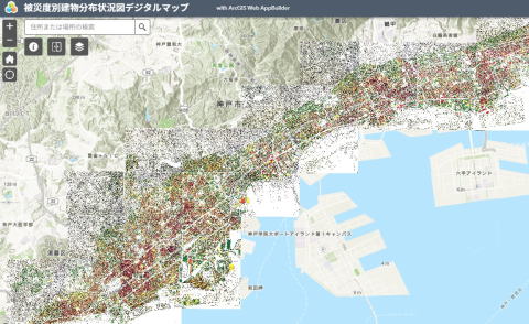 構成被災度別建物分布状況図デジタルマップ」 で、建物被災の詳細な記録を確認することができます。
