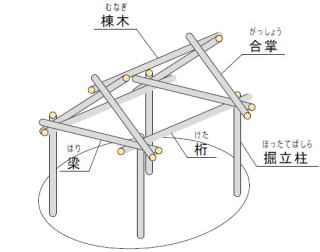 軸組(線材)で支える基本構造は、竪穴式住居から受け繋がれてきたものです。