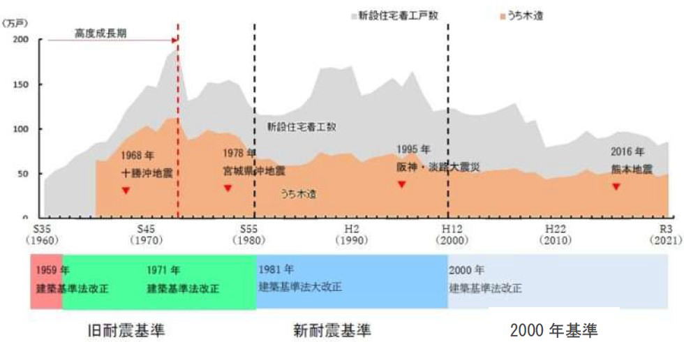 【新設住宅着工数の推移と建築基準法】