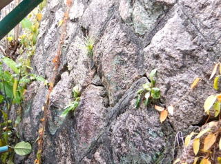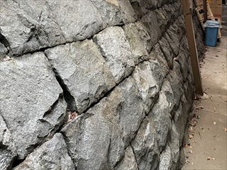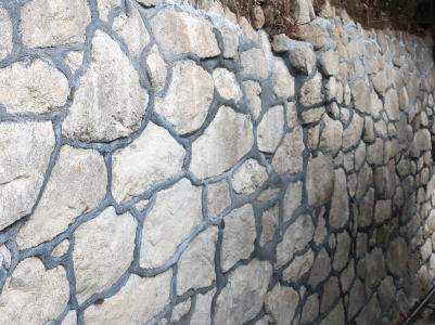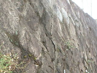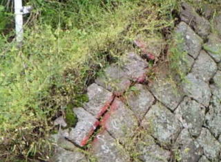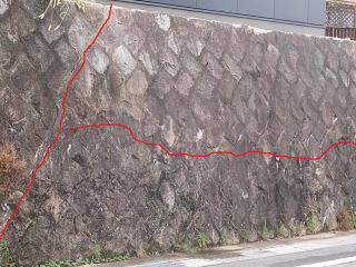 石積みの目地にモルタルを詰められている擁壁では、目地モルタルにひび割れが生じます