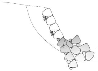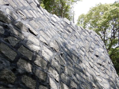空石積みは、石材間の噛み合わせや目地部モルタル(が有る場合)の接着力だけで、石同士が強固に結合しているわけではありませんので、壁面に曲げが作用した場合に石材間の接合部分が引張に抵抗できないことが特徴です。