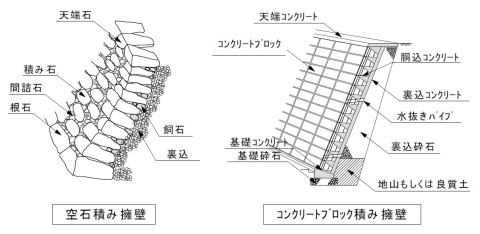 石積み擁壁の断面構造