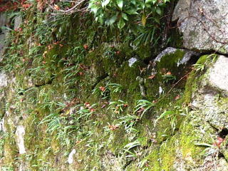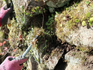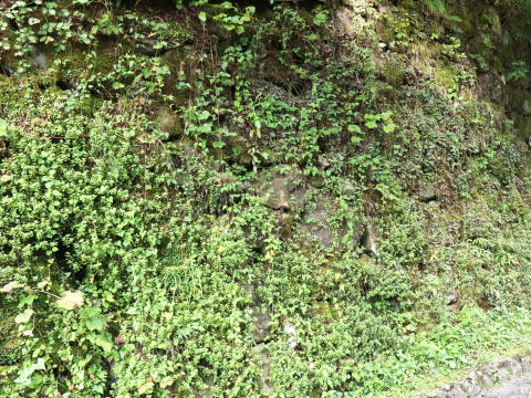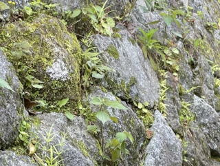 空石積み擁壁は、石の隙間が排水孔となり、水分を効率的に逃がすことが出来る特徴がありますが、びっしりと雑草が繁殖して排水機能が低下していました。