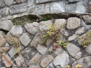 雑草や樹木の根で目地が押し広げられ、苔の繁茂により水分が籠り凍結融解が繰り返されることで不安定になって崩壊リスクが高まります。