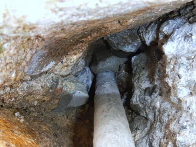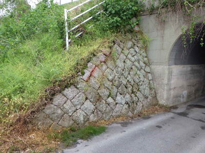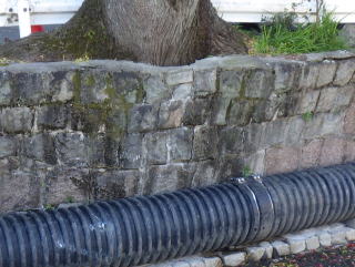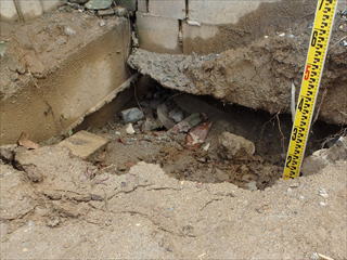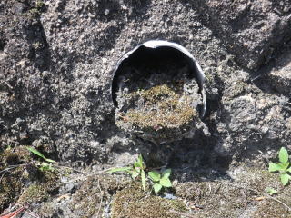 擁壁天端のモルタルが剥がれて口が開いていたり、擁壁上部に陥没穴が有ると擁壁裏面に雨水が流入することになります