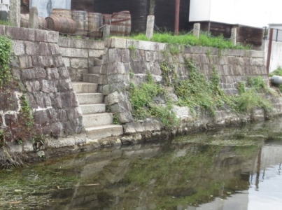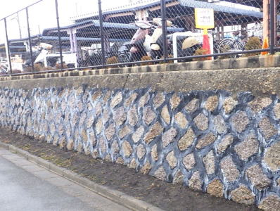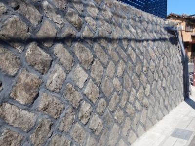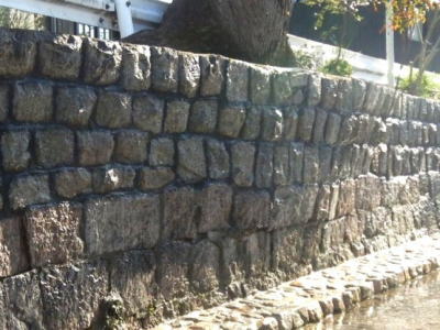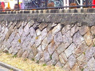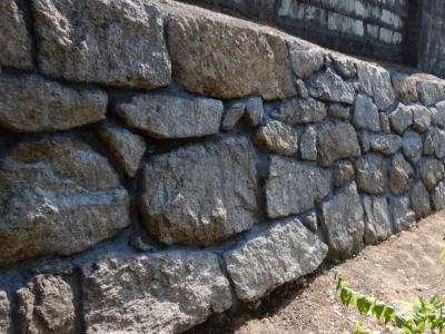 空石積みで自然石、割石、玉石、間知石等が用いられていますが、現代の練積みはコンクリート製の間知ブロックを用いてコンクリートで一体化されます。