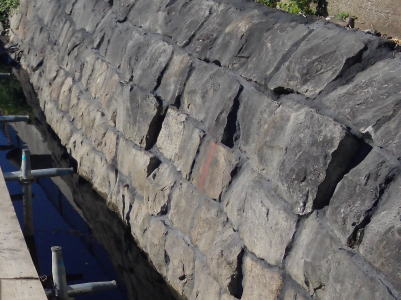 モルダム工法は、既存の石積みの内部に優れた接着性を有する石積み専用充填剤を注入する事によって補修・補強する工法です。