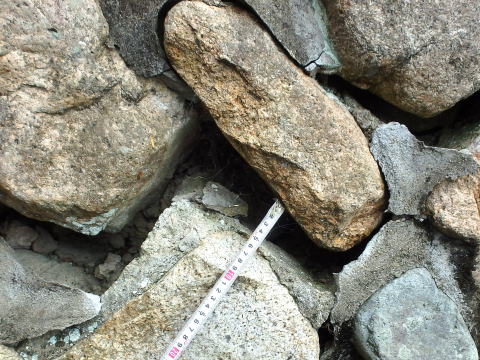 ・石垣や擁壁の背面に詰める小石(主に直径10〜30cm程度)のことで、石と土の間の隙間を埋め、石積みの安定性を増します。