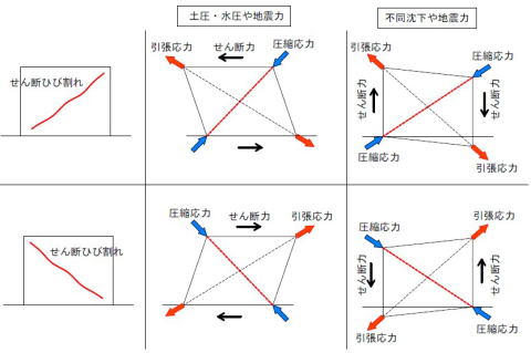 斜め方向の「せん断ひび割れ」
