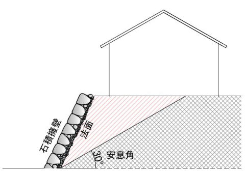 石積み擁壁は「重力式擁壁」の一種で、自重により土圧に抵抗する構造です。